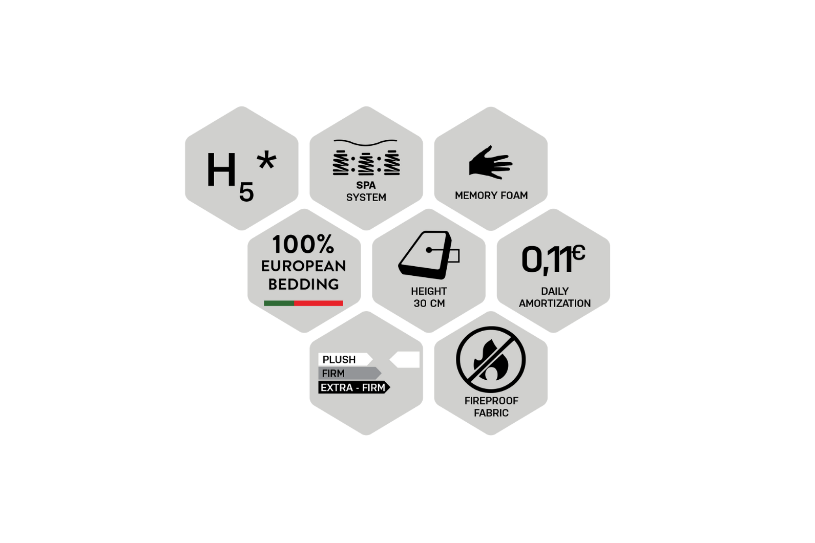 Sistema de suspensão de Design Duplo que garante o melhor suporte e adaptabilidade. Permite a ventilação interna. Firmeza intermediária (estrutura). O viscoelástico permite uma excelente adaptabilidade aos contornos do corpo. Sistema de Caixa de Segurança, garante que toda a área de superfície seja útil.